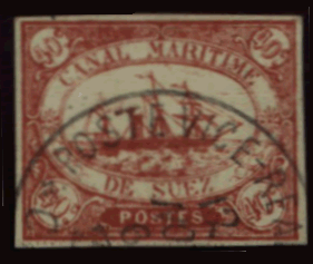 Emessi l8 luglio del 1868 i quattro francobolli, non dentellati, del Canale di Suez ebbero corso sino al 15 agosto dello stesso anno, quando il governo egiziano ne vietò luso.